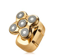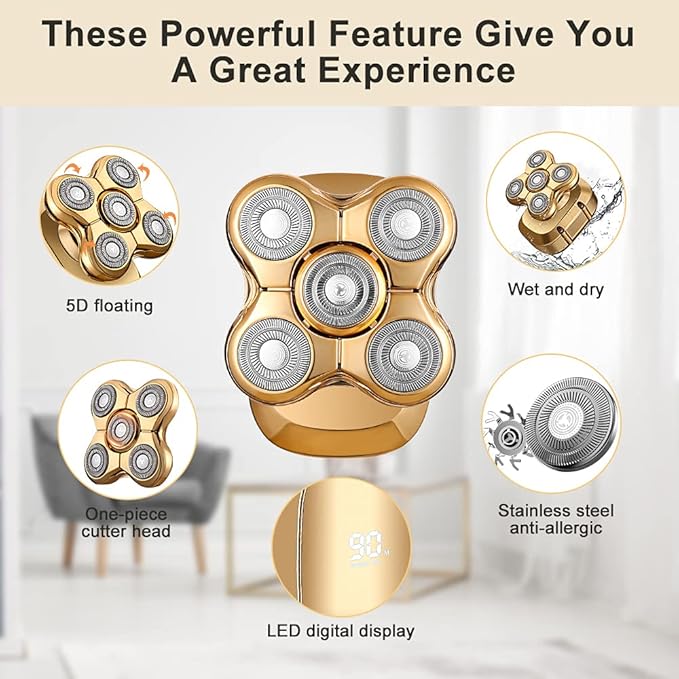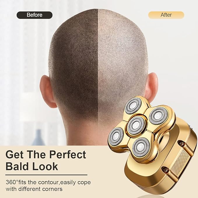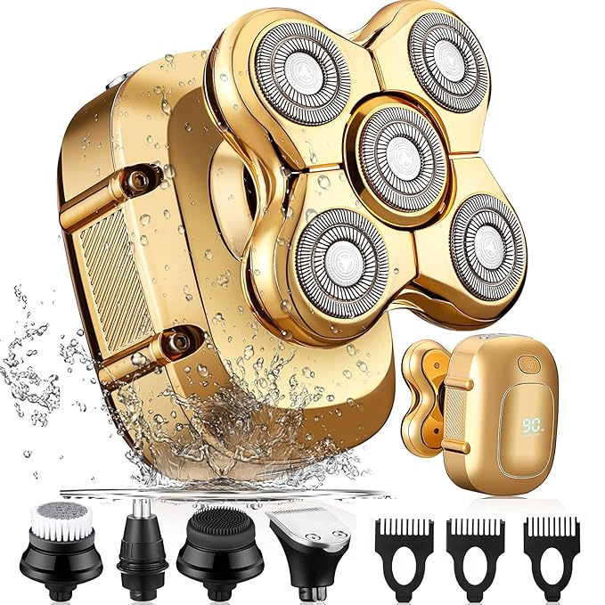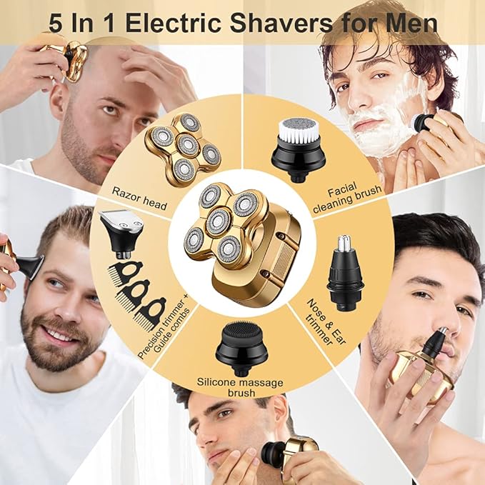 رؤوس 5 في 1: ماكينة حلاقة دوارة، ماكينة قص/تشذيب الشعر، ماكينة تشذيب شعر الأنف والأذن، فرشاة تنظيف الوجه، إسفنجة ناعمة/رأس تدليك