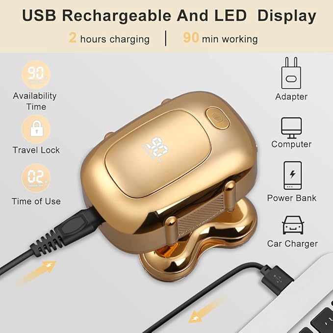 مجموعة ماكينة حلاقة لاسلكية بحجم راحة اليد يتم شحنها عبر USB في ساعتين وتعمل لمدة تصل إلى 90 دقيقة.