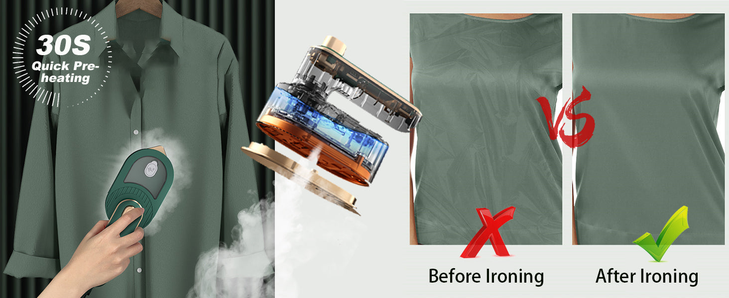 Equipped with a powerful 40W core, it can quickly preheat and produce delicate and powerful water vapor within 30 seconds, quickly ironing out clothing wrinkles.