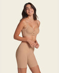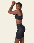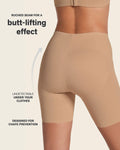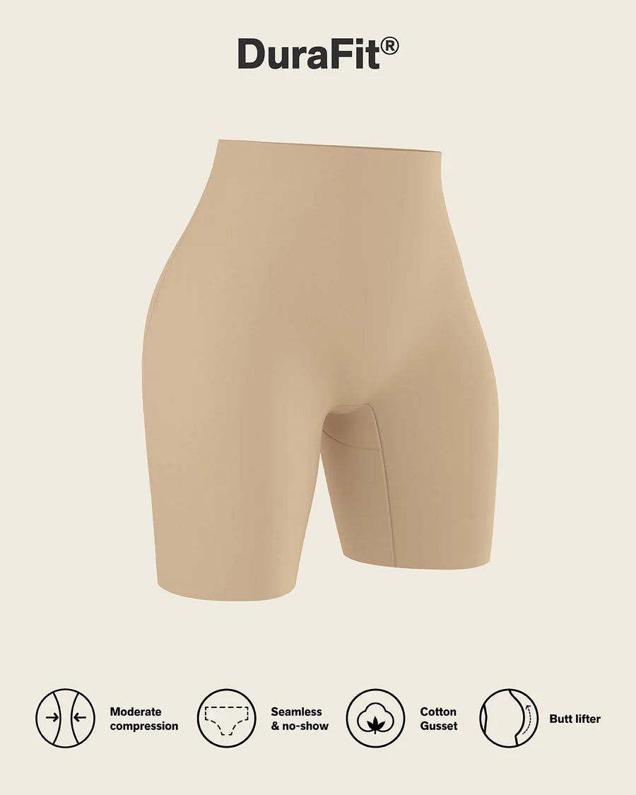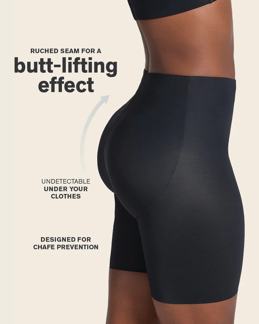 It shapes your tummy, waist, hips, and thighs while smoothing cellulite and preventing chafing. It also gives a natural butt-lift.