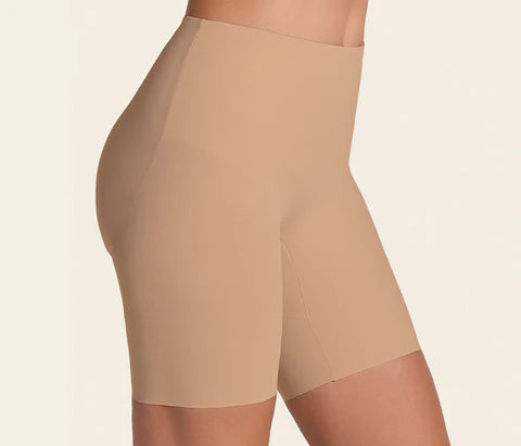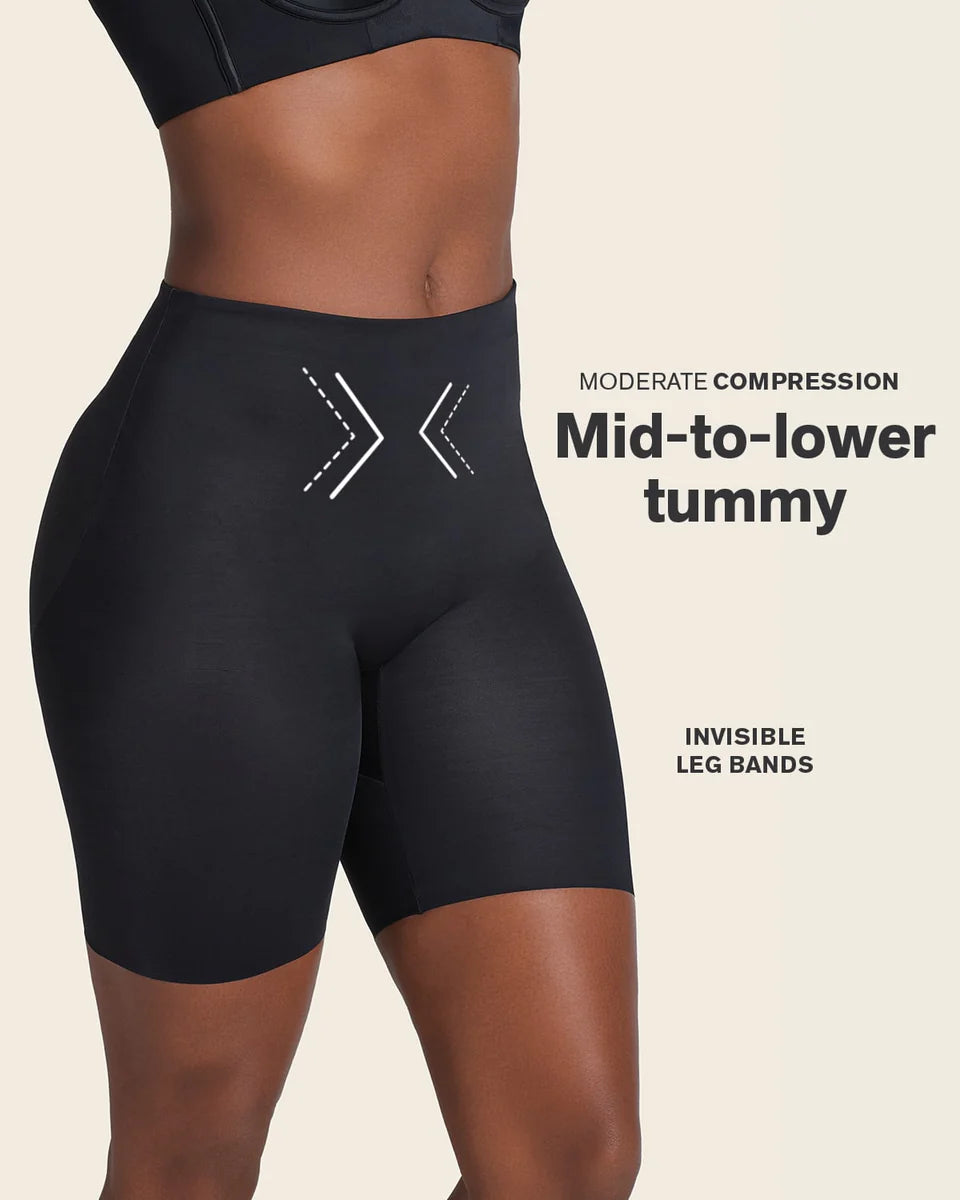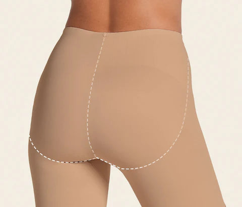 A shaper short that's totally invisible under clothes. It doesn't dig in at the waistband or leg bands. Features an inner layer of our signature AirFlex® compression fabric, attached using thermofusion technology. In other words, the fabrics are joined by heat instead of seams to provide moderate compression without bulk. Specialty bands in the back for a butt-lifting effect. The perfect piece to wear under pants, skirts, or even party dresses!